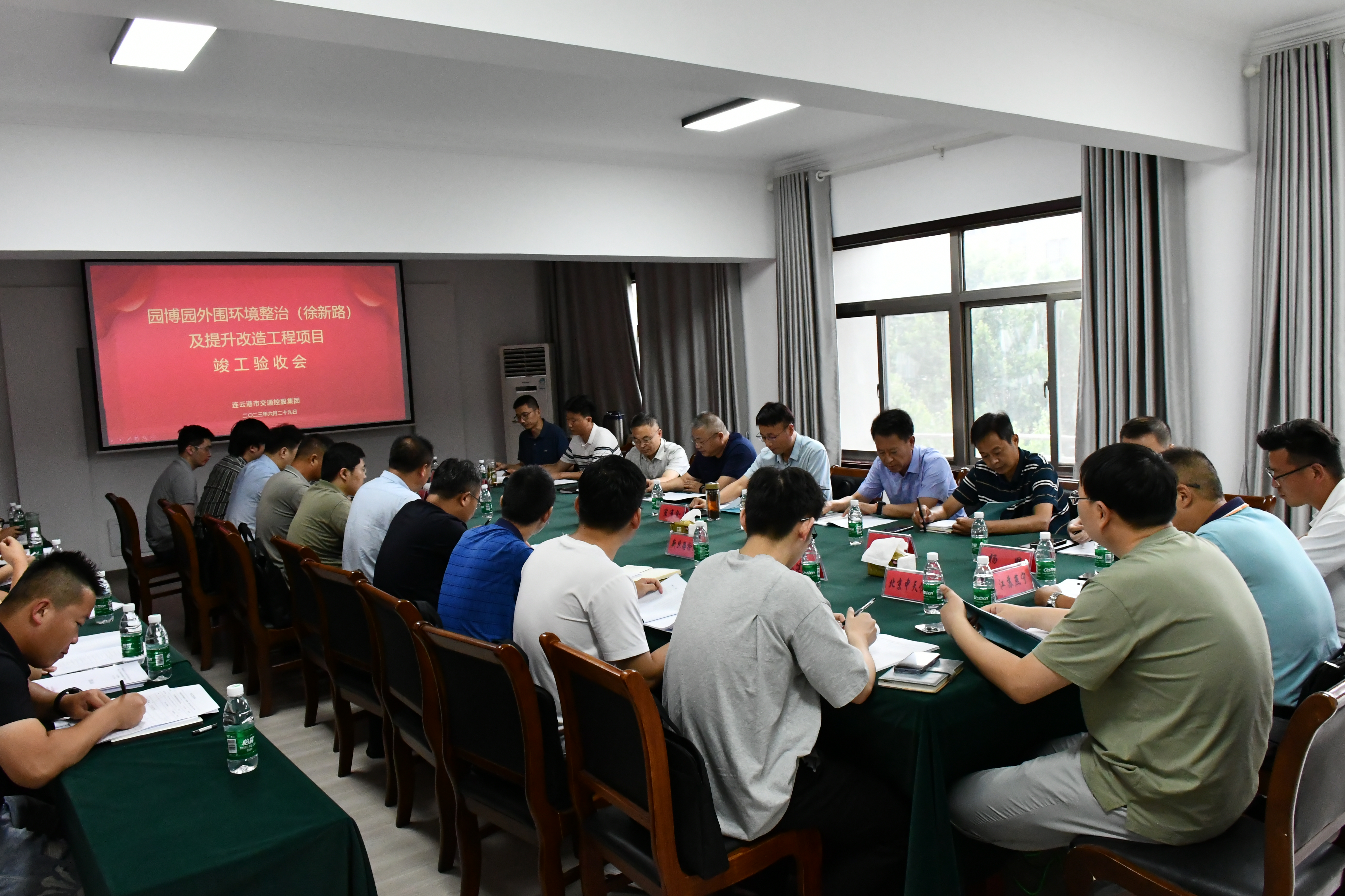 2023年6月29日,在市交通控股集团4楼会议室召开园博园外围环境整治(徐新路)及提升改造工程项目竣工验收及移交会议。市区道路快速化改造项目指挥部、市住建局、云台山景区管委会、海州区住建局、建设、设计、监理、检测、施工等单位代表出席会议。