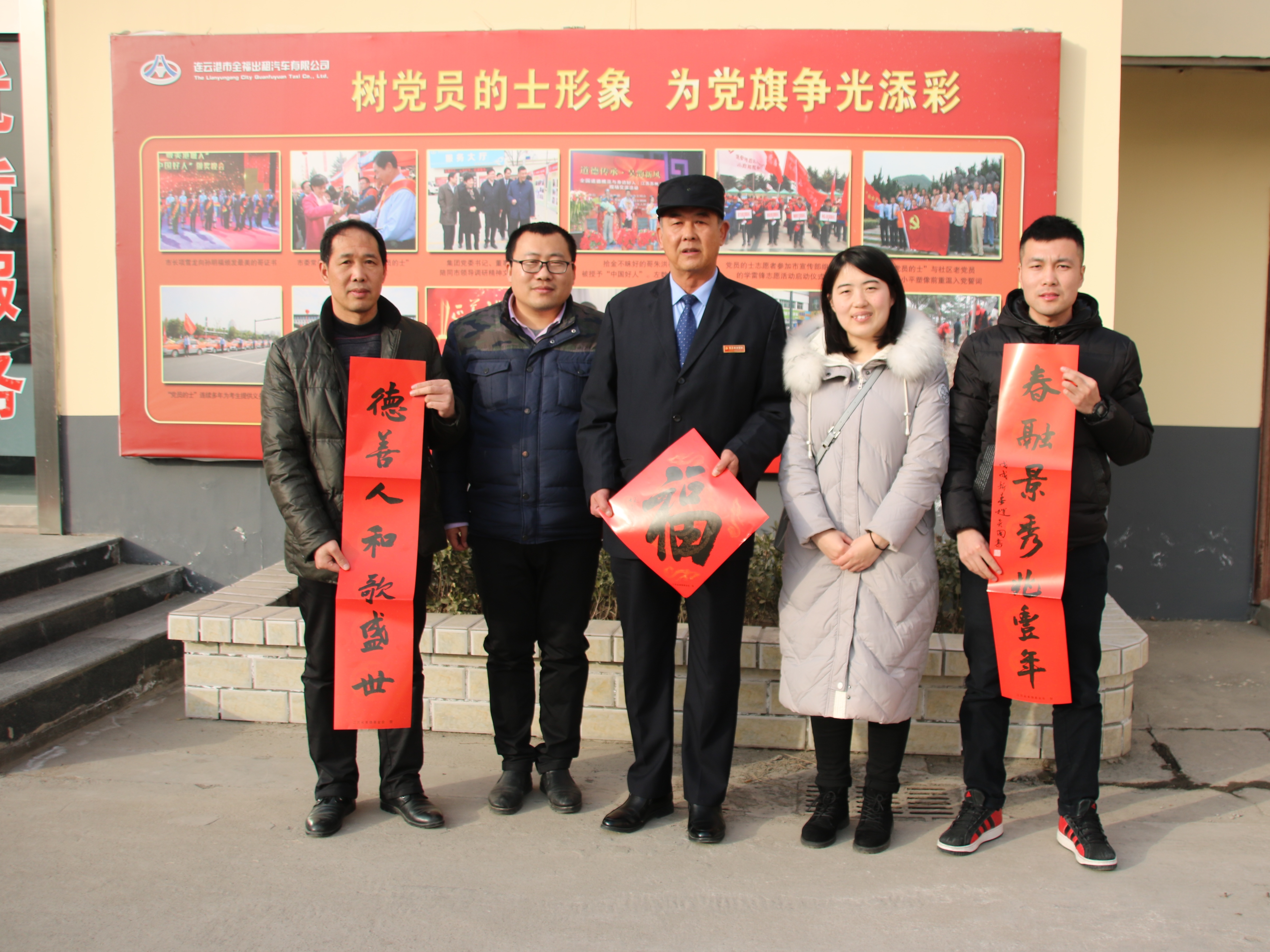 2月10日下午,市文明办综合处处长王飞来到全福出租公司看望 “党员的士”队长、“省道德模范”、“省优秀志愿者”、“市最美的哥”孙明福,为他送来了由知名书法家书写的春联、福字、米面油等慰问品及慰问金。