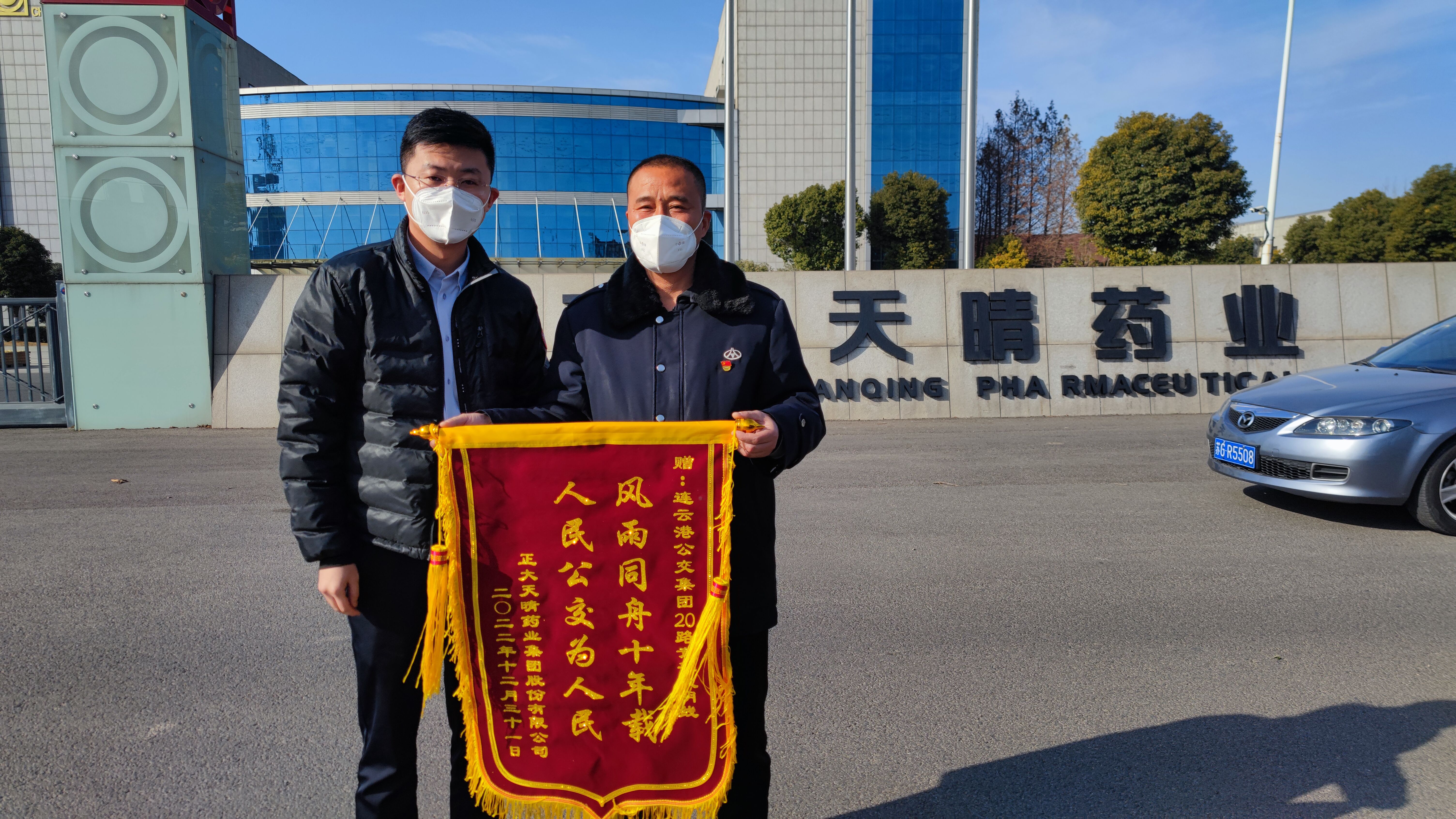 近日,连云港正大天晴药业集团为公交集团20路送上锦旗,用最质朴、最真挚的方式,对20路全体驾驶员十年如一日安全正点、暖心周到的服务表示感谢。“风雨同舟十年载、人民公交为人民”锦旗上的十个大字在阳光的照射下熠熠生辉。截止至2022年年底,该企业已连续10年为20路送来锦旗,十年来年年如是。