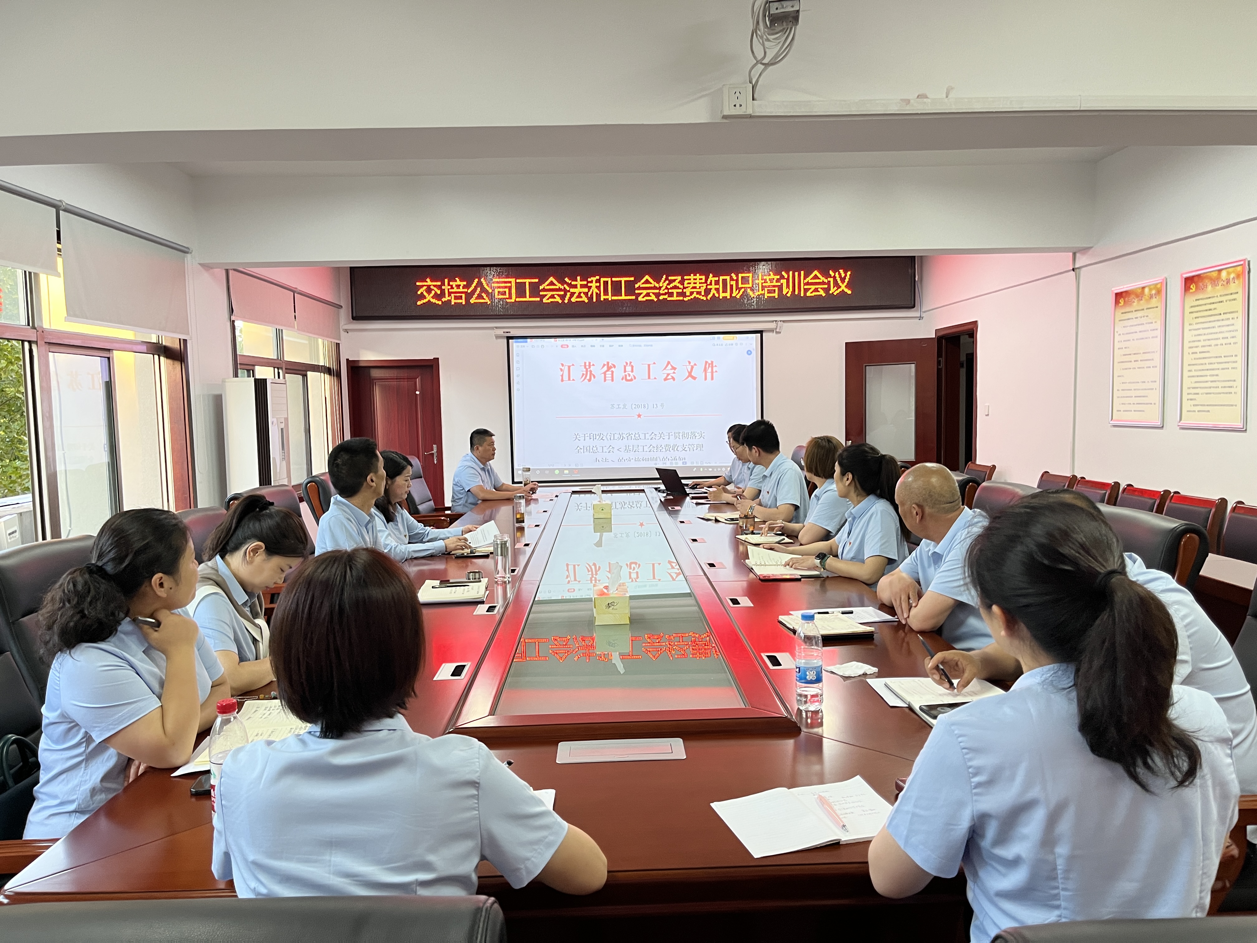 为增强广大职工对新修订《工会法》的认识了解,推进基层工会经费管理规范化建设,提高工会干部职工的理论知识和履职能力,更好地服务职工群众,近日,交培公司召开《工会法》和基层工会经费知识专题培训,公司党委书记、总经理李霞等领导班子成员及职工代表参加,会议由纪委书记、工会主席陈志文主持。