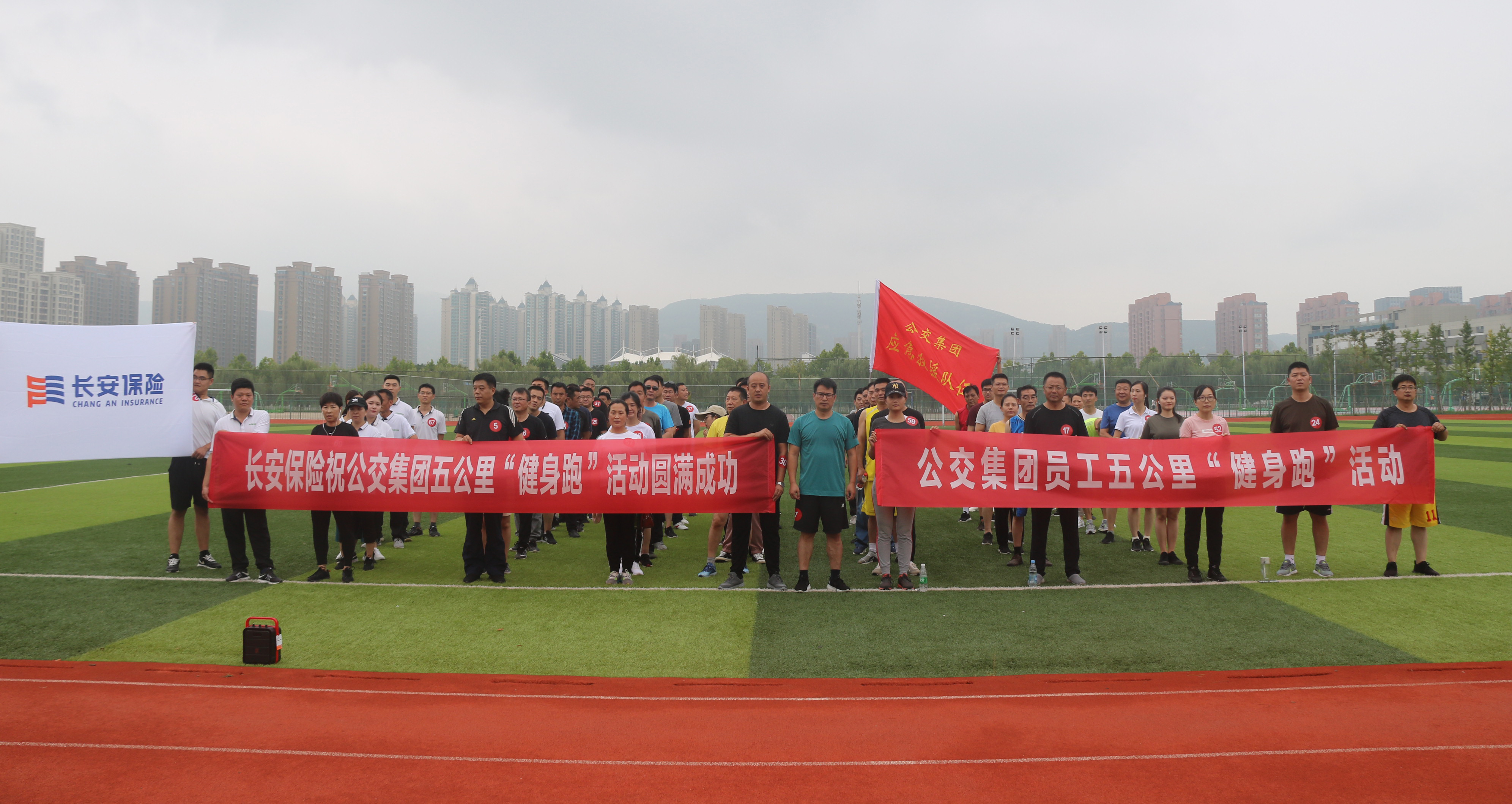 为切实提高应急队员的体能素质,着力提升应急救援能力,8月22日下午,集团在江苏海洋大学体育场跑道,开展了以“为救援奔跑、为健康加油”为主题的应急队员5公里拉练赛,集团安委会成员、各级安管人员、部分驾驶员及长安保险公司总经理董洪霞一行共80余人参加了拉练赛活动。