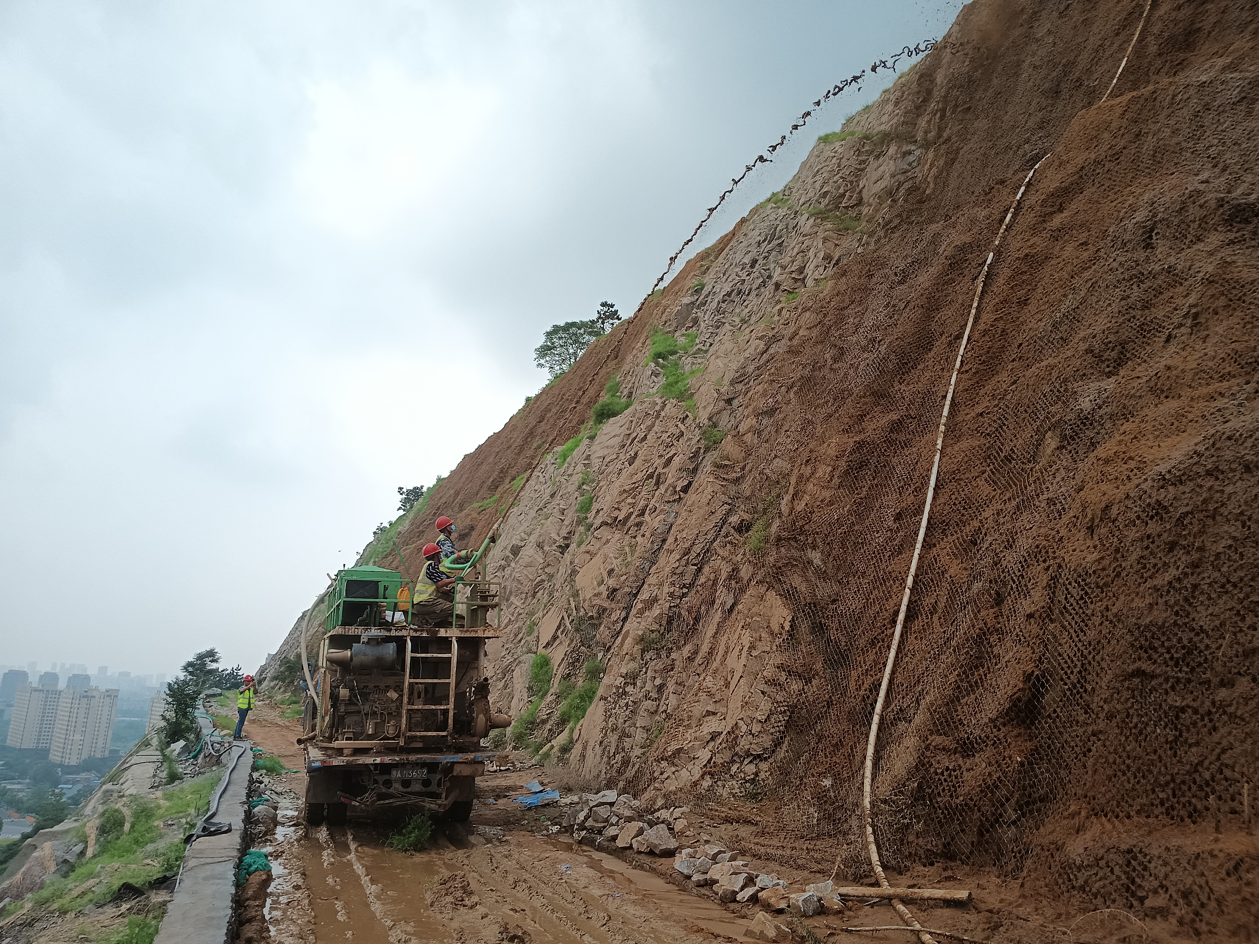 近日,由交通集团承建的马涧通道北侧边坡生态修复工程进入二次喷播收尾阶段,将于8月全面完工。届时,生态修复可初步见效,裸露边坡将覆满绿植。