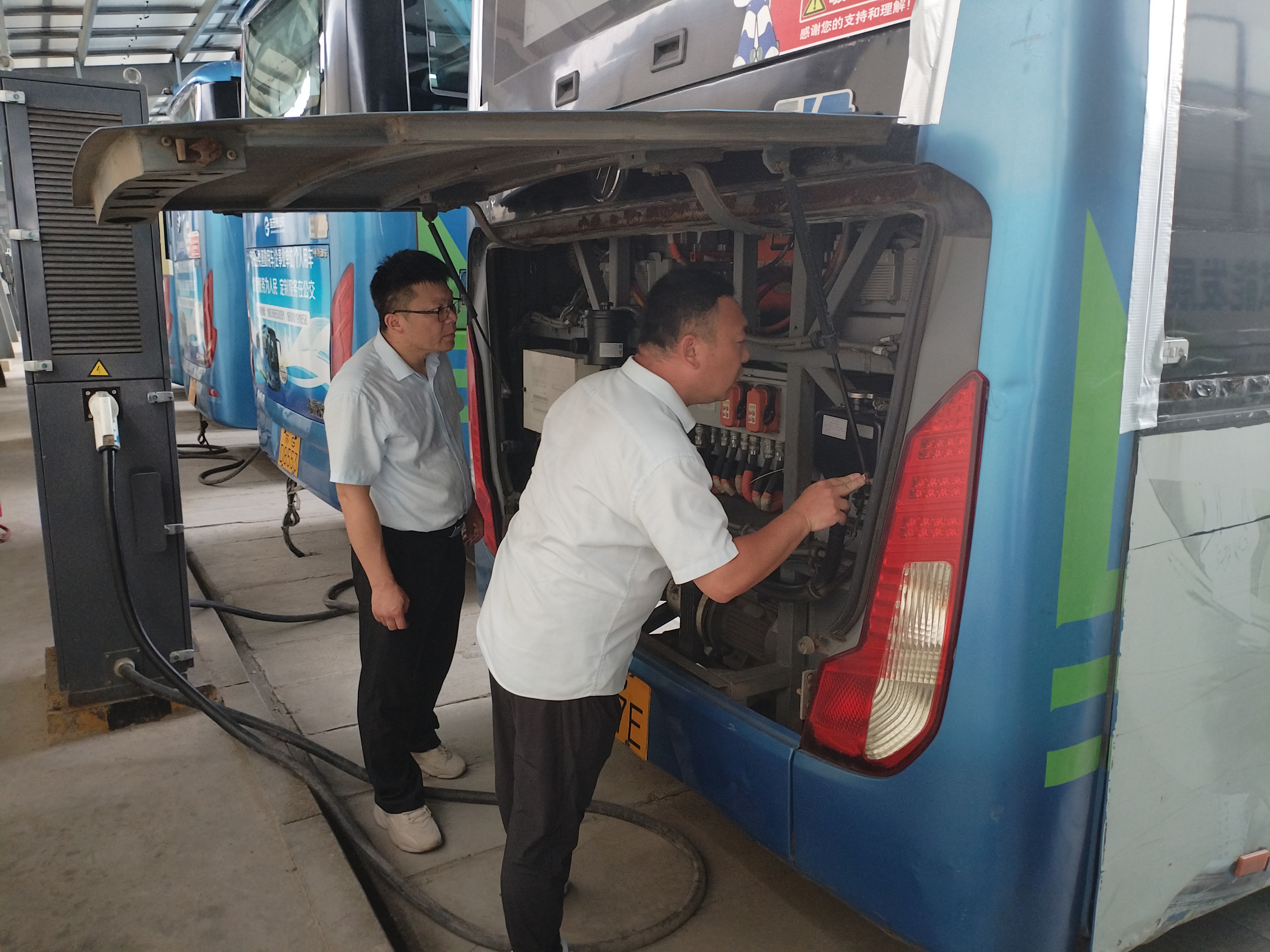 检查中,公司安全管理及机务人员对运营车辆展开细致排查。重点检查了关乎行车安全的核心系统,包括制动系统、转向系统、传动系统、灯光系统等。同时,对发动机、电池组、油/气管路、电气线束等关键部位进行了全面检查,确保高温下运行可靠。针对乘客舒适度与安全,空调制冷系统的工作状态以及大客车座椅、安全带的完好情况(有无损坏、松动)也是此次检查的重中之重。