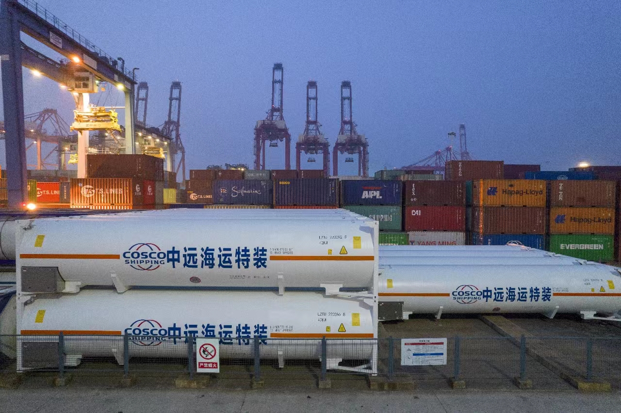 10月26日上午,物流集团16个LNG罐箱于连云港中远海运特装公司正式发运,开启连云港至加拿大温哥华行程。本批量通过罐箱模式采购的LNG返港后,将直接为我市交通及工业用户提供冬季供气服务。