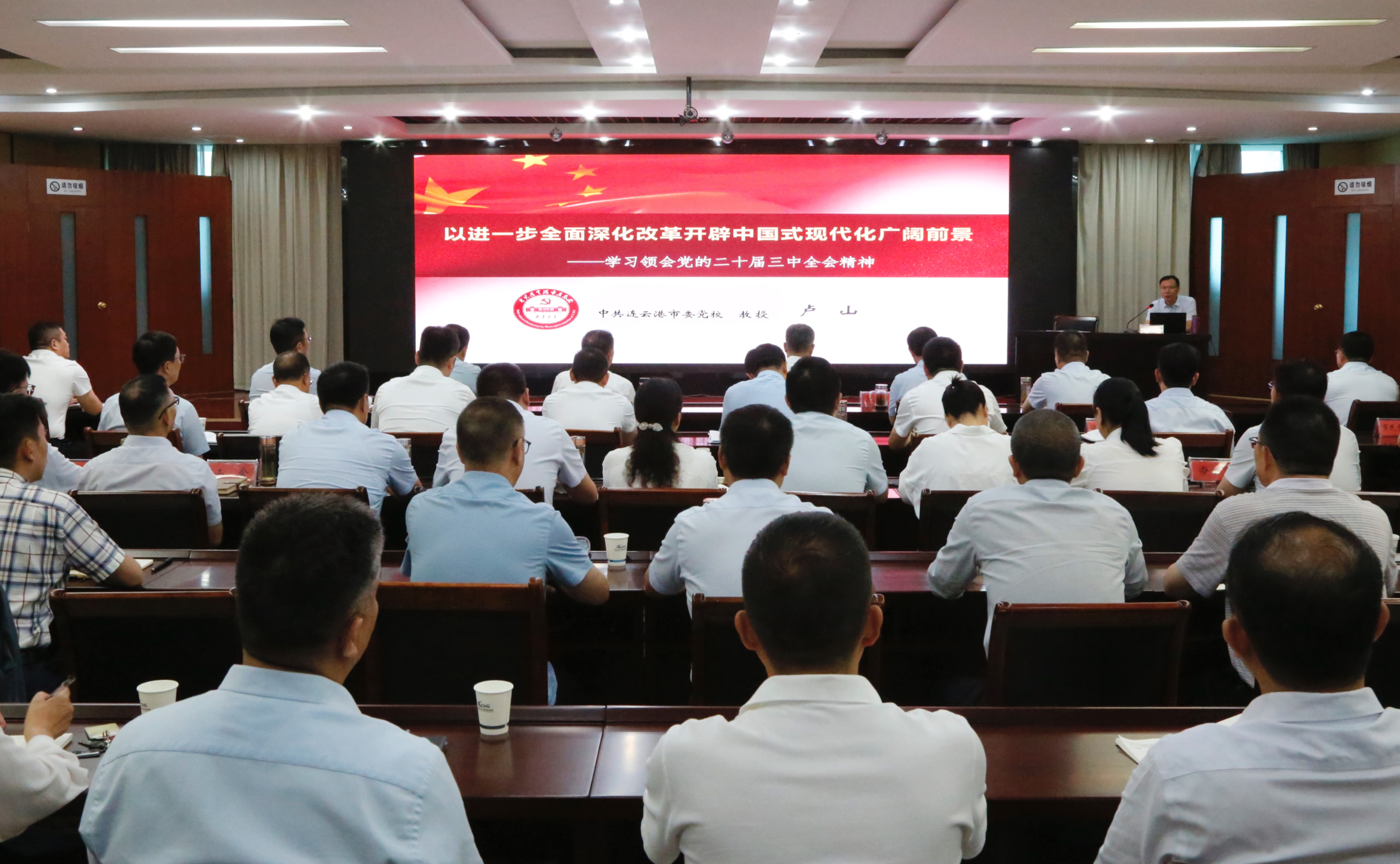 8月16日,集团举办学习贯彻党的二十届三中全会精神培训会,邀请市委党校教育长、教授卢山作专题授课。集团党委领导班子成员、集团各部门负责人、各权属单位领导班子成员及党群部门主要负责人、“两代表一委员”共70人参加培训。培训由集团党委书记、董事长仲伟涛主持。