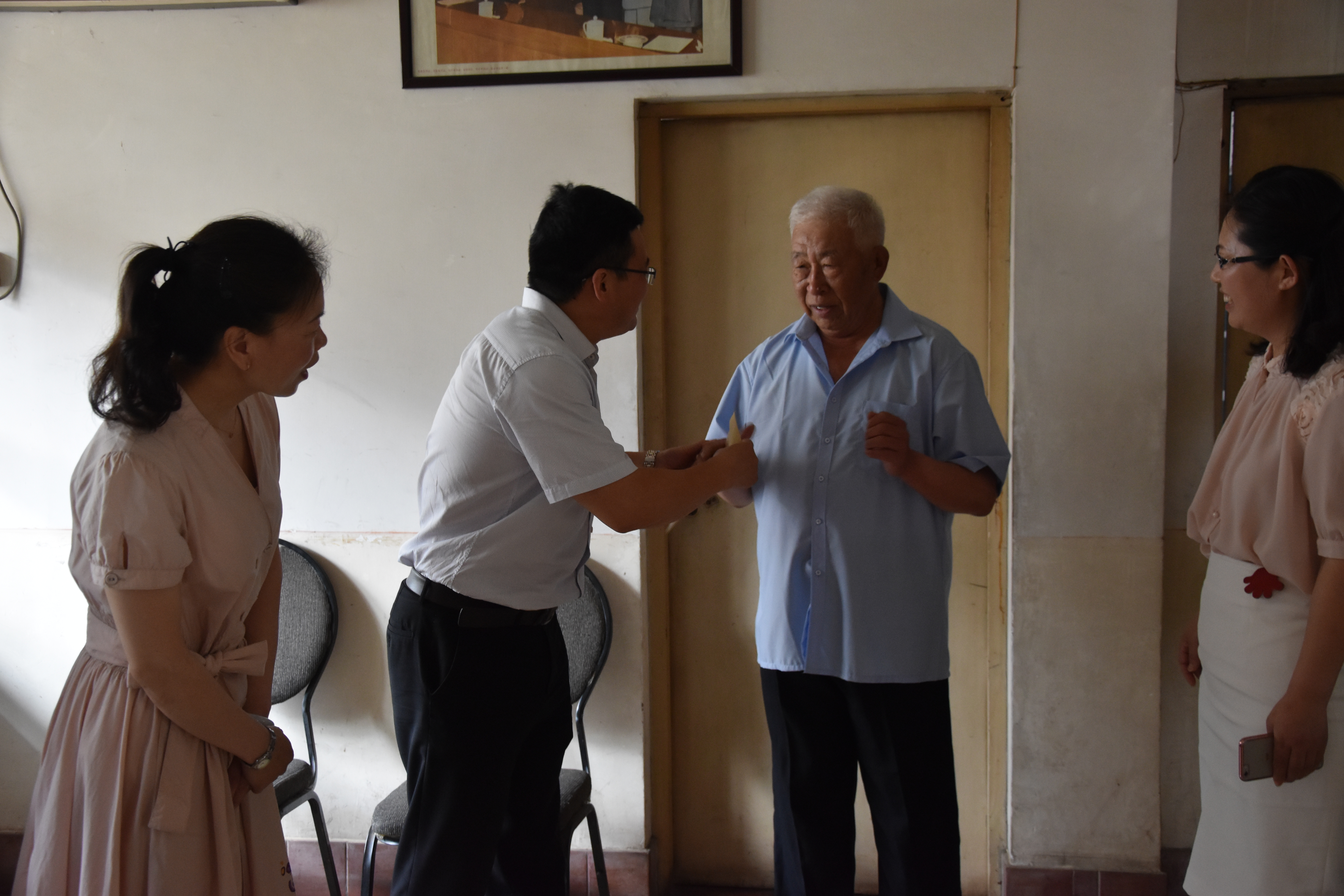 这次交通集团党员志愿者及社区党员走访慰问的站北社区老党员分别是单青松和张敏。单青松是港城已故第一代雷锋车手李宝英的爱人,他于 1940出生、 1962入党,由于儿子残疾 ,给他的家庭生活带来一定困难。张敏是 1942出生和1968入党的老党员,他的老伴也是一位老党员,患有慢性病长期吃药治疗,家庭生活较困难。在走访慰问中,交通集团党员志愿者十分关心老党员们目前存在的困难,希望能通过这种社企党员联手,帮助社区老党员度过难关,走上幸福的晚年生活。