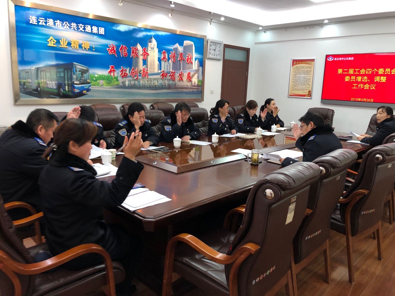 3月26日,公交集团工会召开2019年第一季度工会工作会议,集团工会全体委员参加会议,会议由集团副总经理、工会主席刘永善主持。